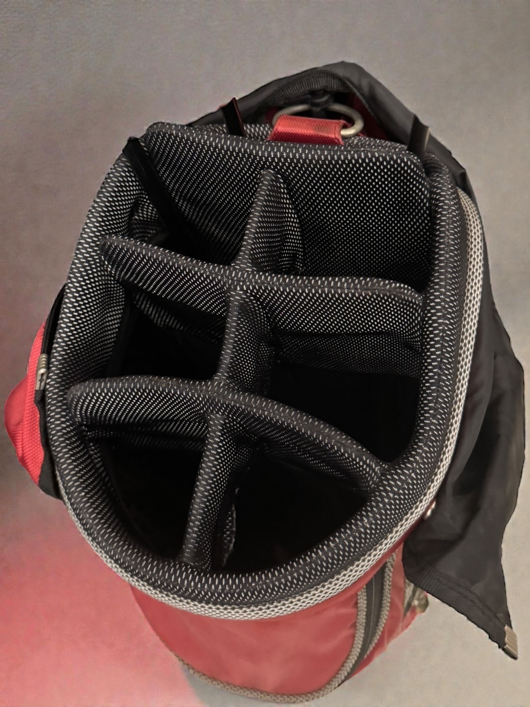 Adidas Golf Cart Bag, With Strap and Hood Cover and 7 Way Divider – Red/Silver Colourway.