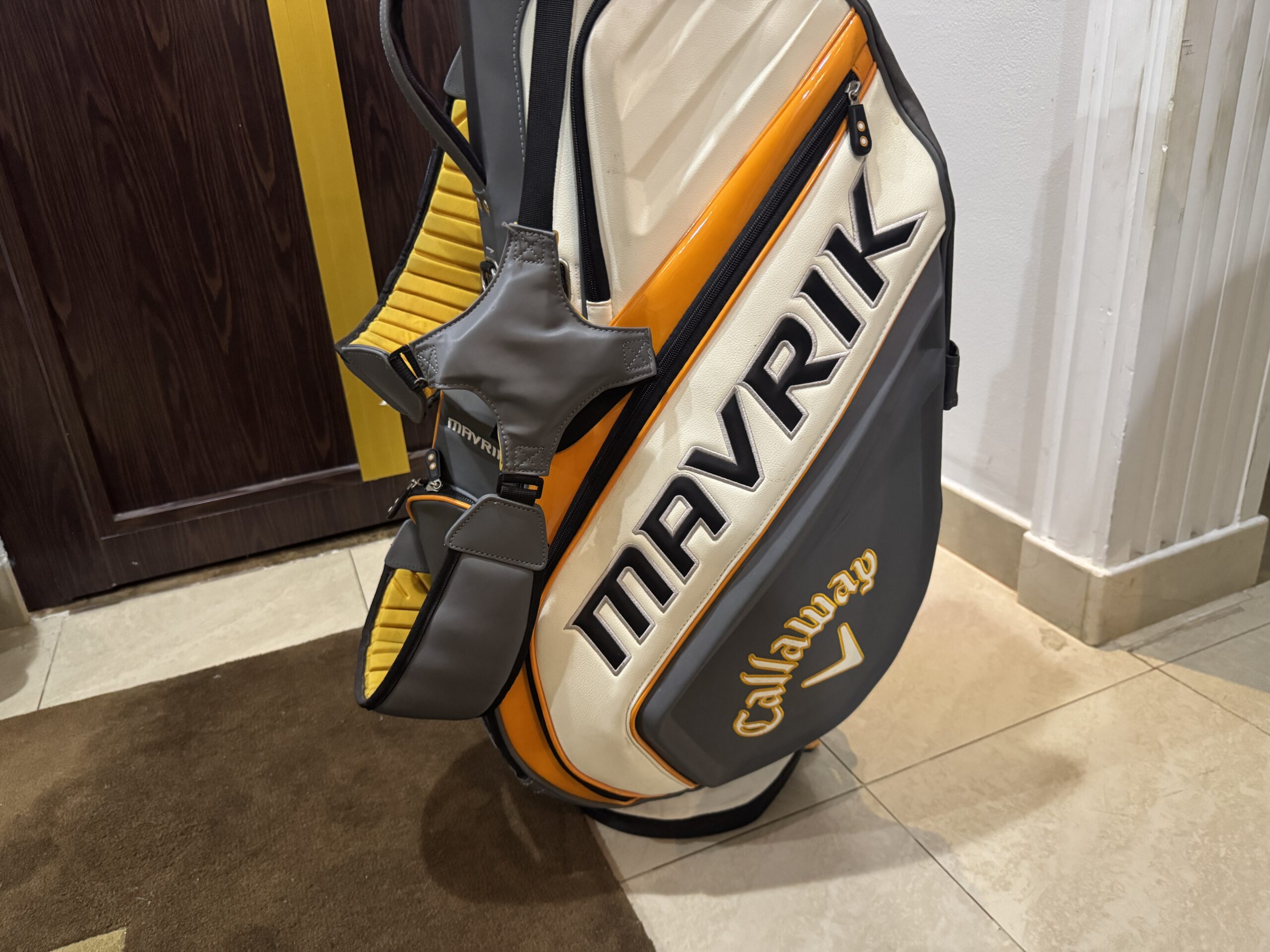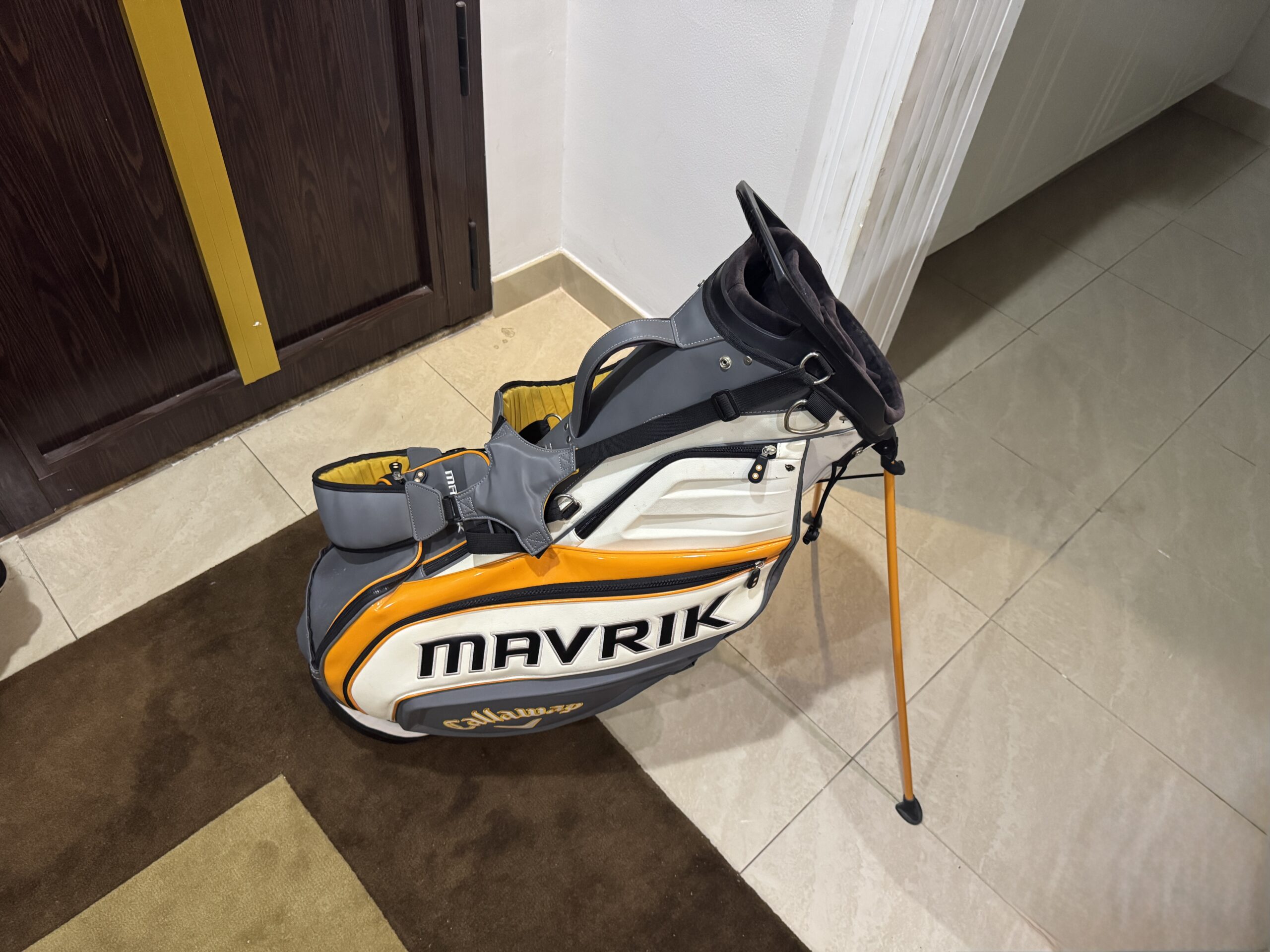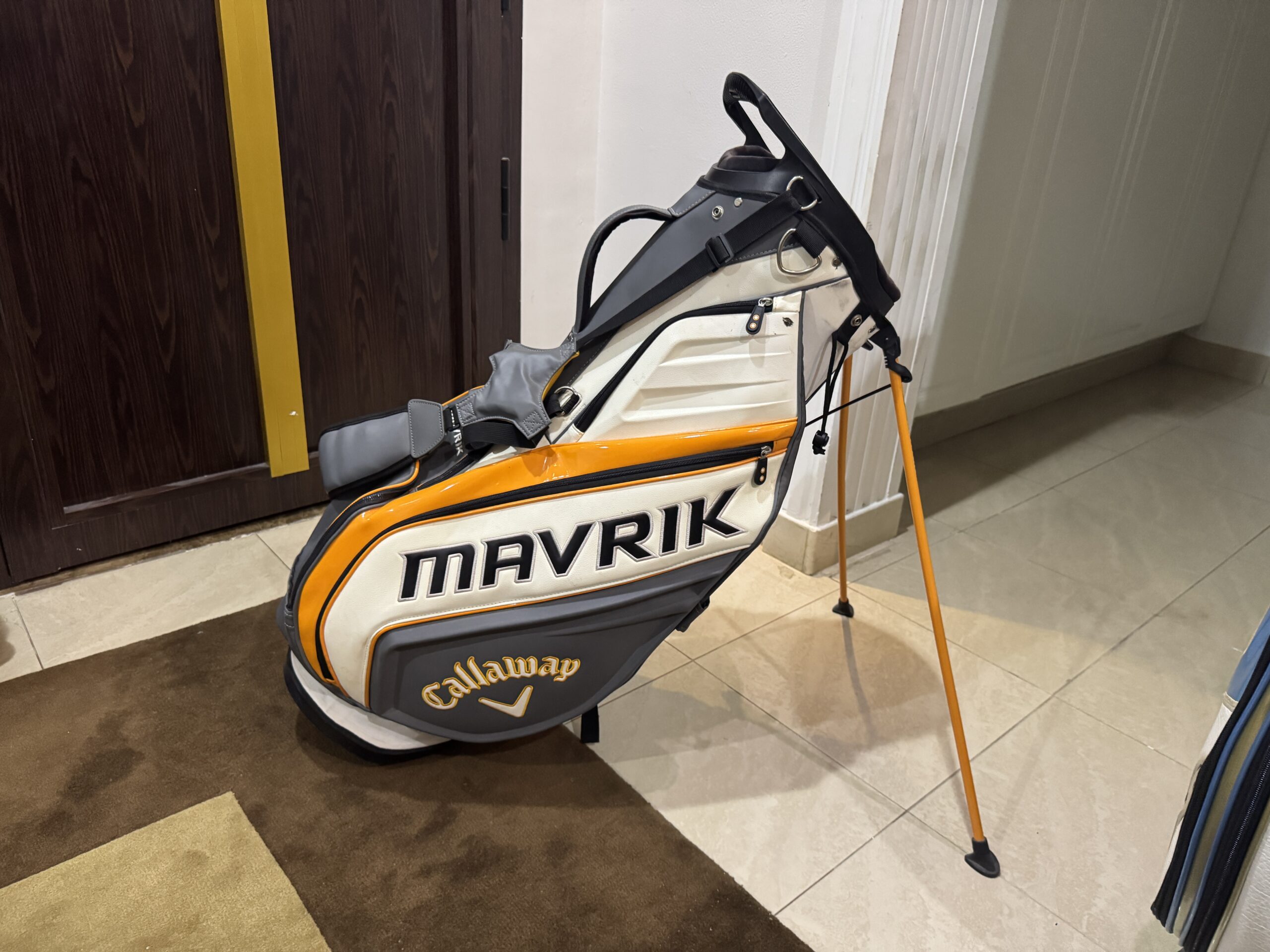 Callaway MAVRIK Stand Bag, White/Orange/Grey/Black Colourway, with a 5-Way Divider, Easy Carry Handle and Double Shoulder Strap System.