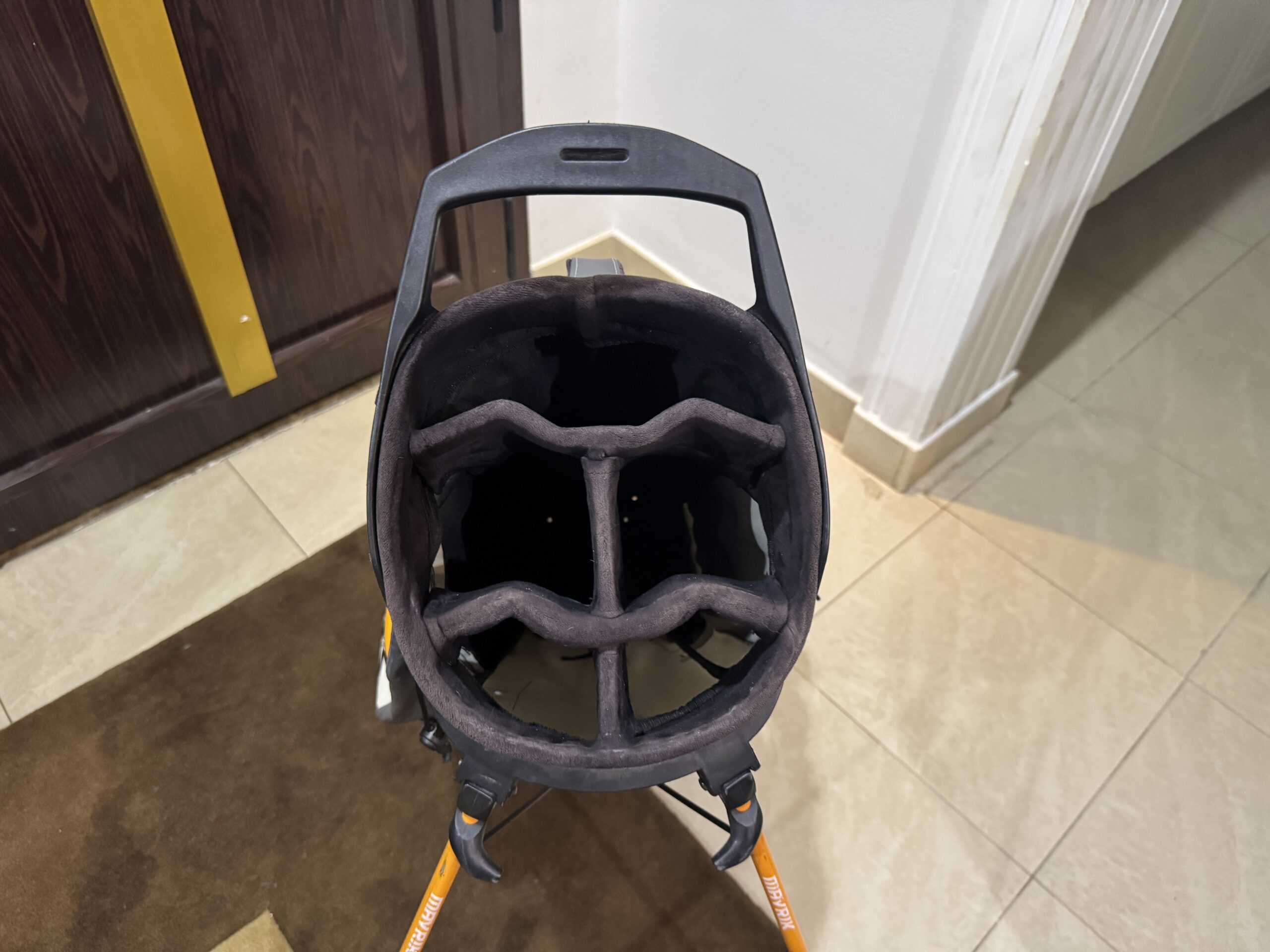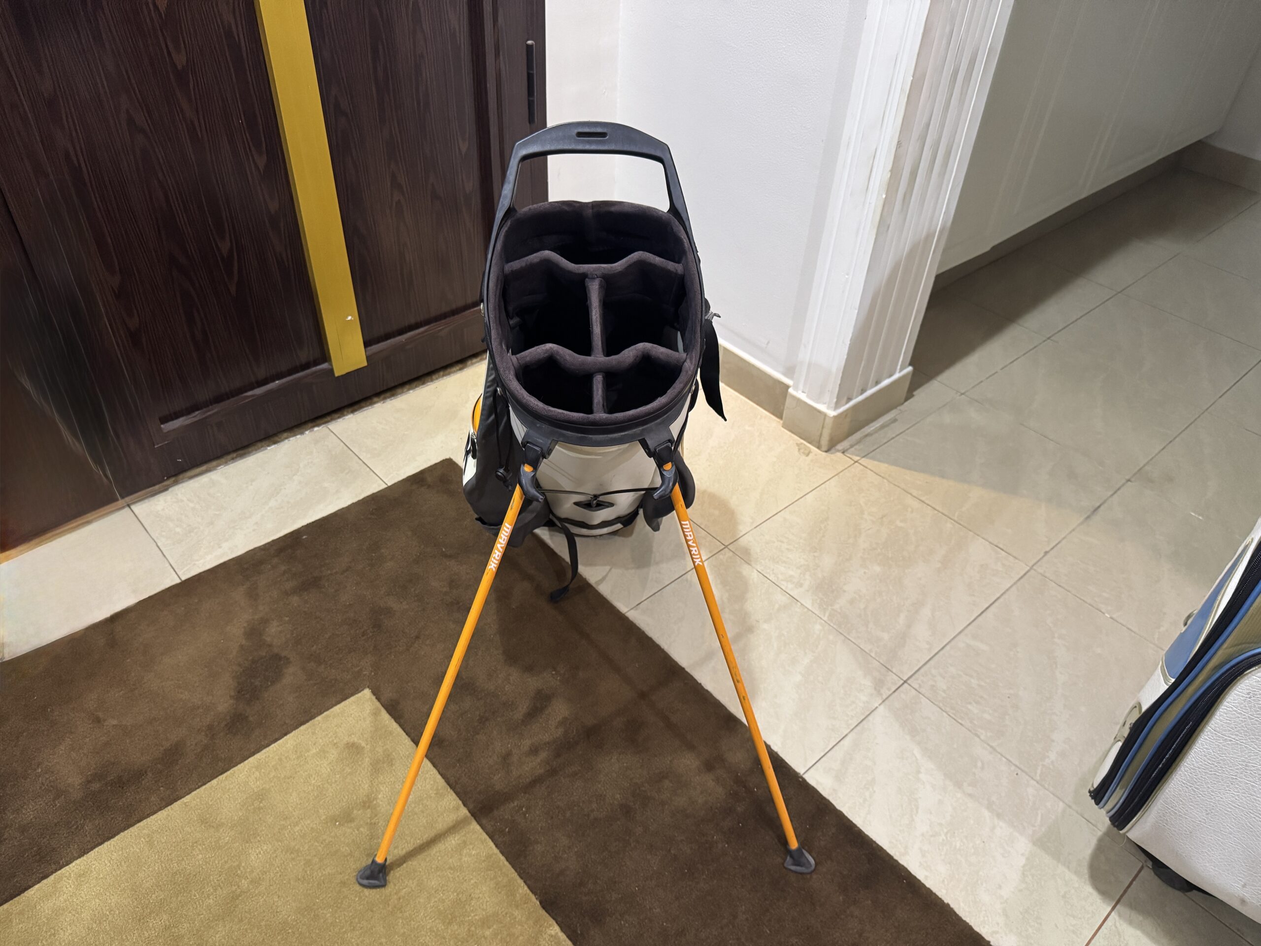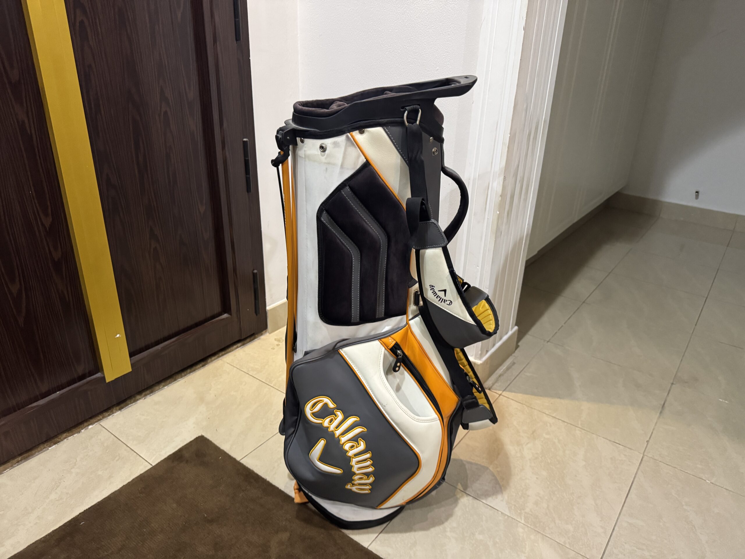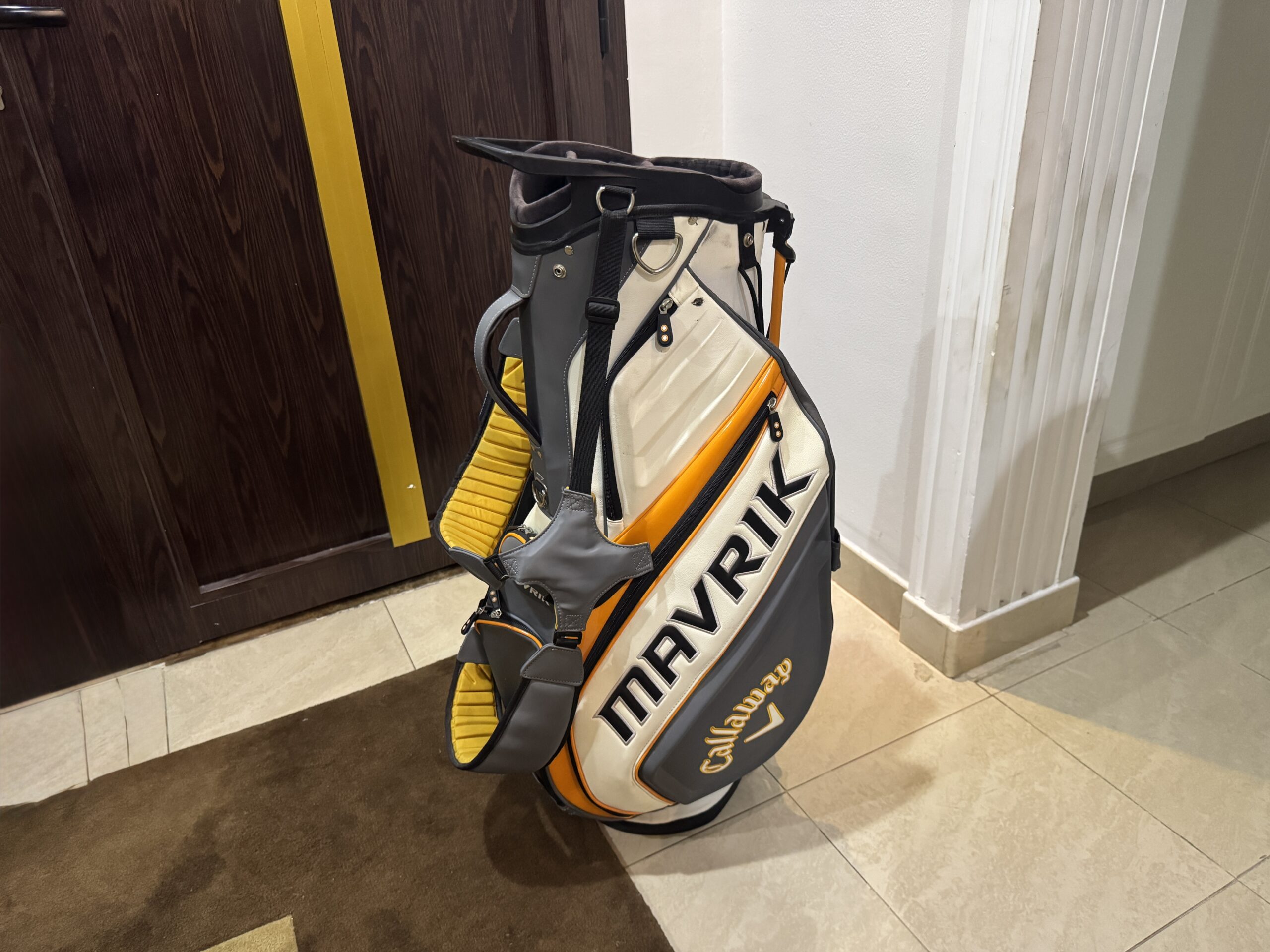 Callaway MAVRIK Stand Bag, White/Orange/Grey/Black Colourway, with a 5-Way Divider, Easy Carry Handle and Double Shoulder Strap System.