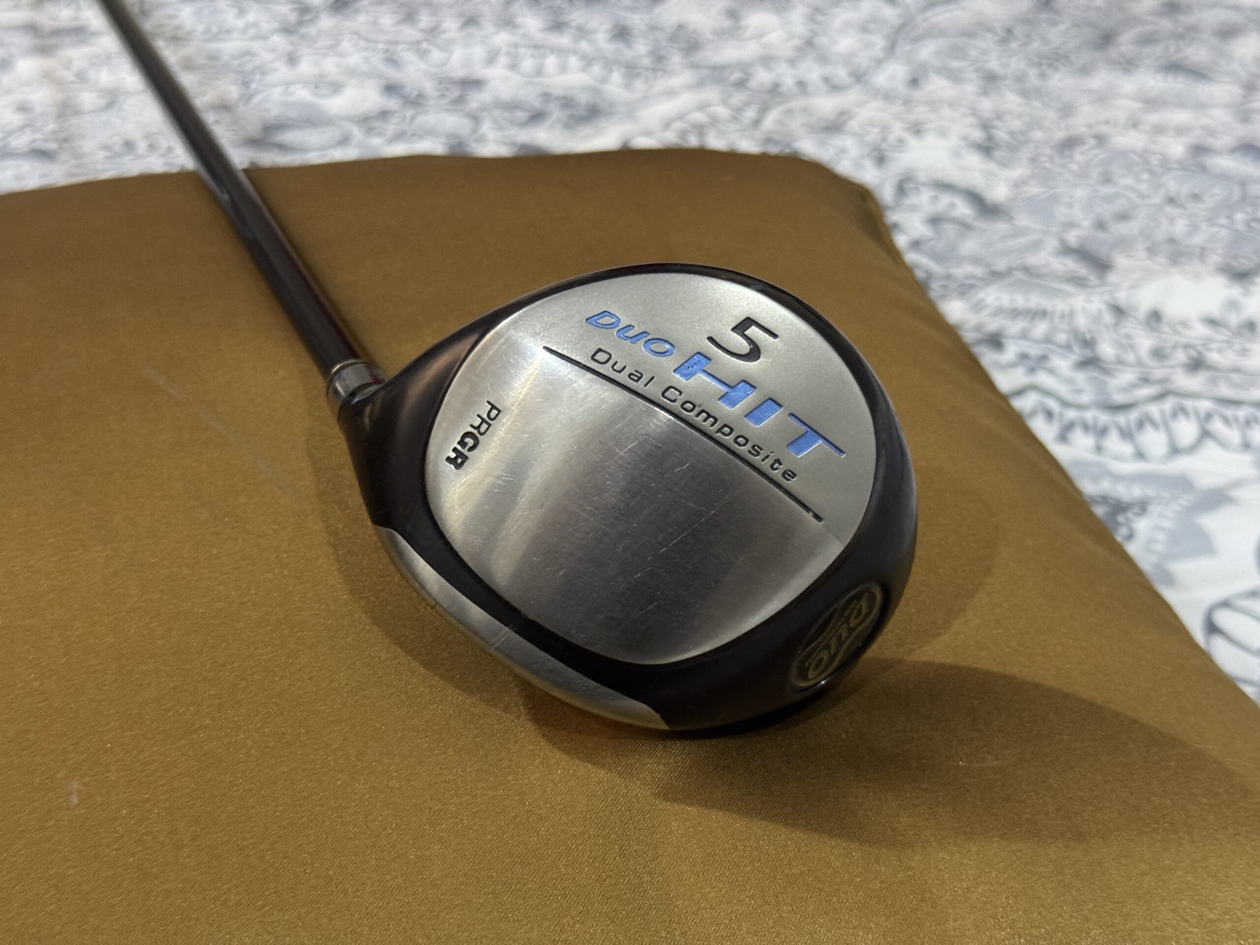 PRGR “Duo Hit” 5 Wood, 18* Loft, with a PRGR Duo Hit 48g Graphite Shaft (40.75 Inch length, Headspeed M-30).
