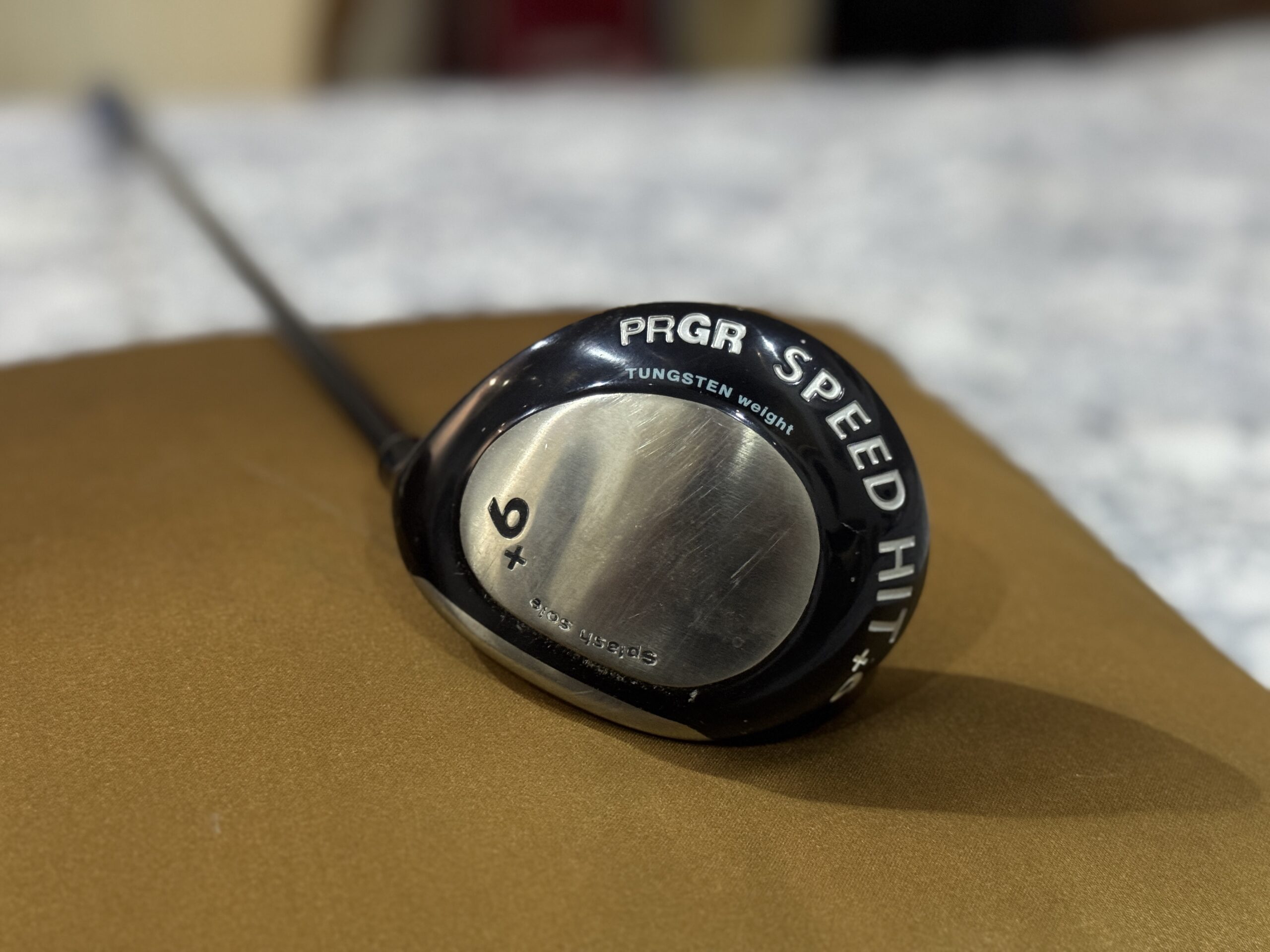 Right Handed Premium Japanese PRGR M37 Speed Hit 9+ Wood, with a Tour Speed Data050 52g Graphite Shaft (R Flex) (4.6TQ), and a Lamkin Torsion Control Blue Grip.